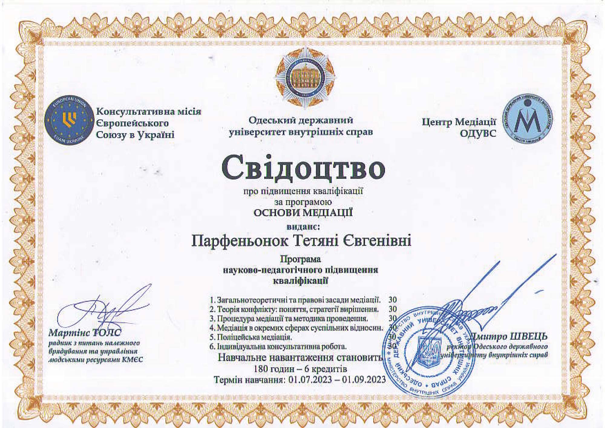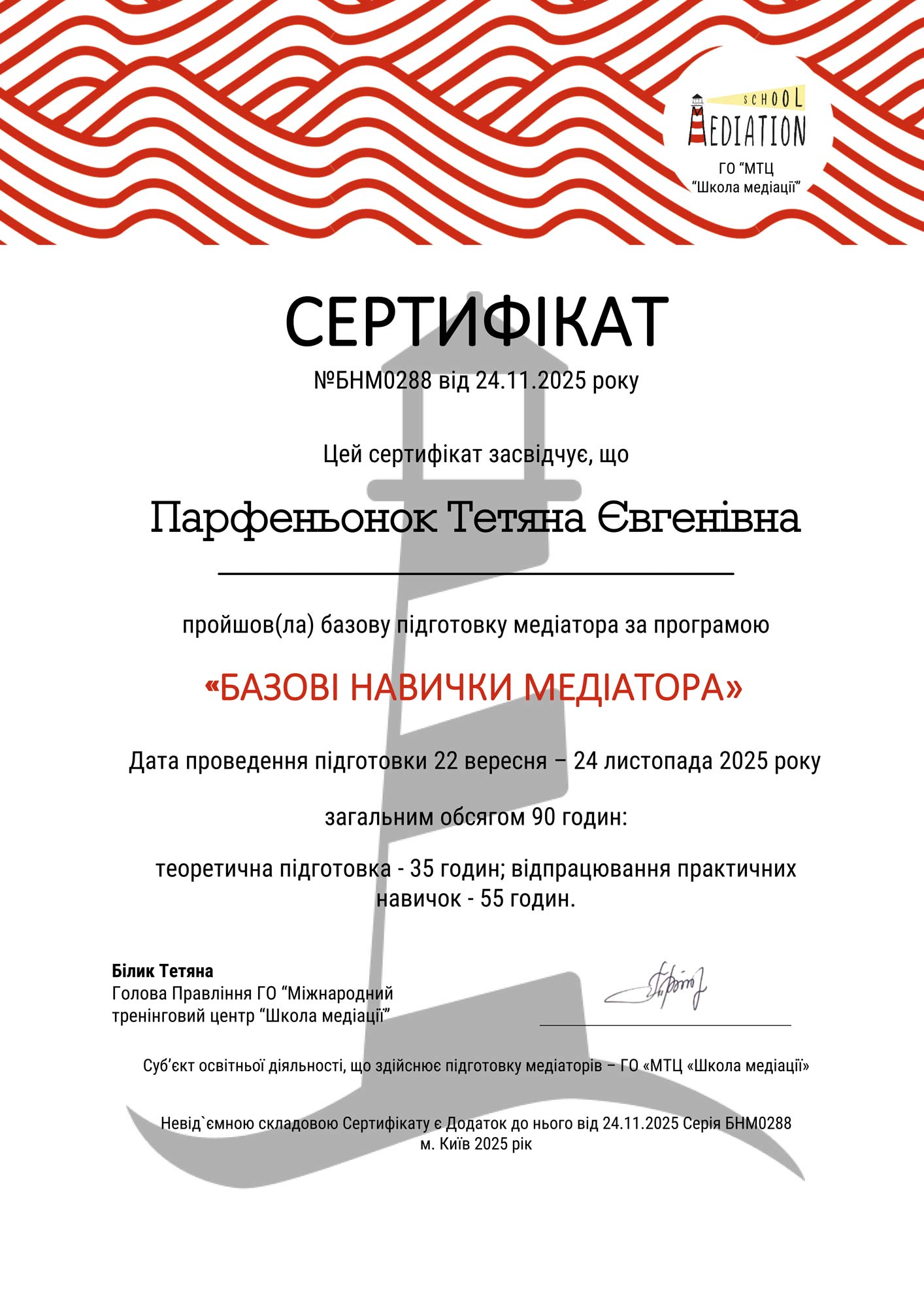 Освіта медіатора: 90 годин, ГО “Міжнародний тренінговий центр “Школа медіації”