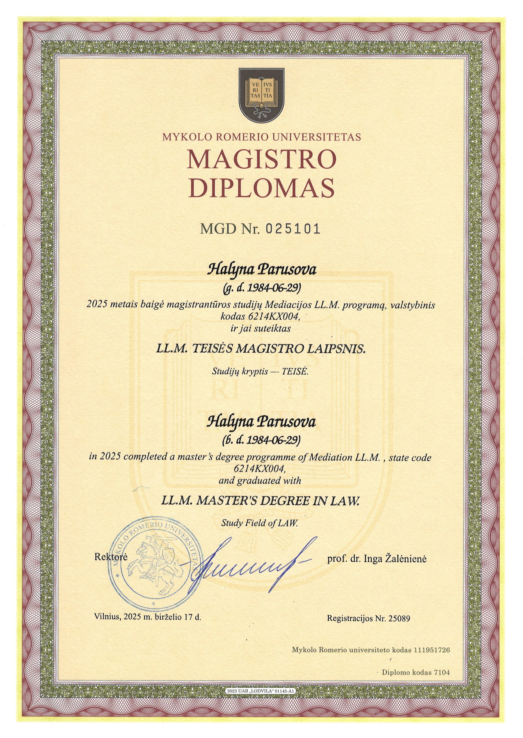 Освіта: Вища, юридична